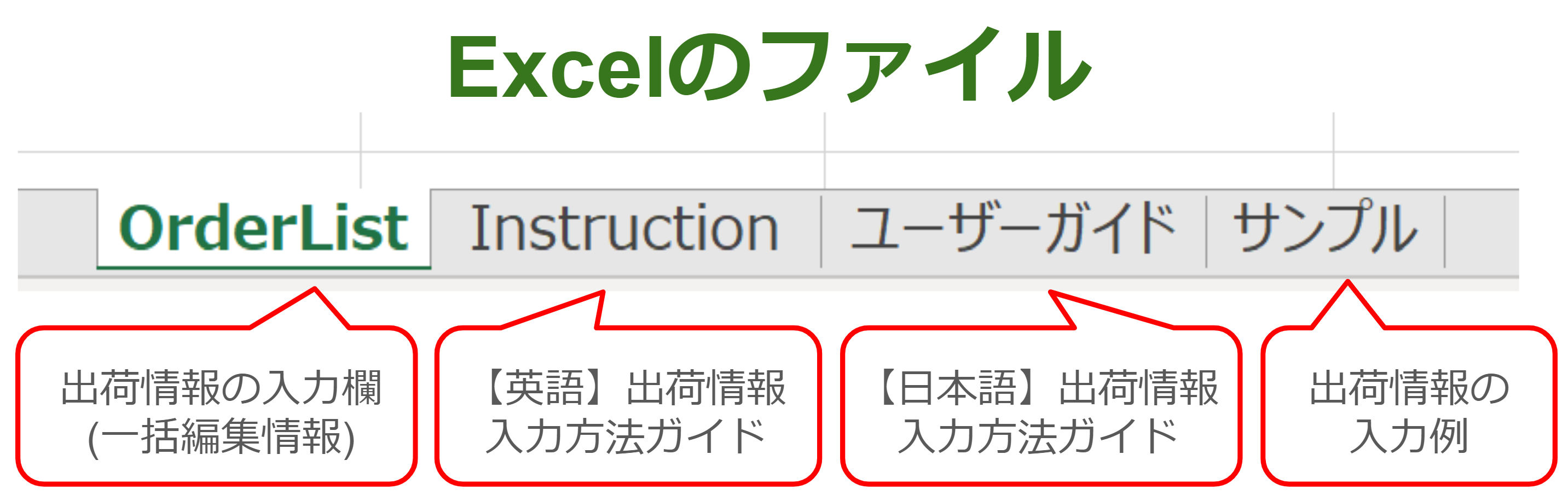 Excelファイルにある「ユーザガイド」シートを参考にし、指定された入力値を「OrderList」シートに入力します。