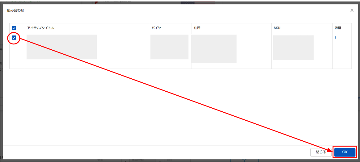 - 組み合わせたい注文にチェックを入れ、[OK]をクリックすると注文が組み合わせられます。