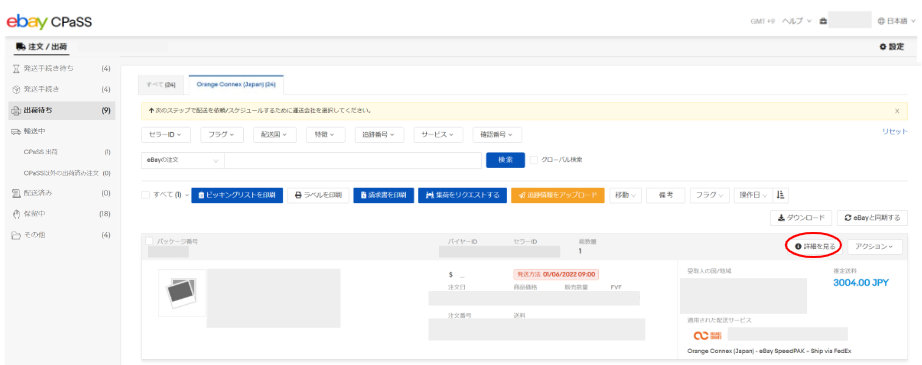 - 再度、[出荷待ち]のタブに移動し[詳細を見る]をクリックします。