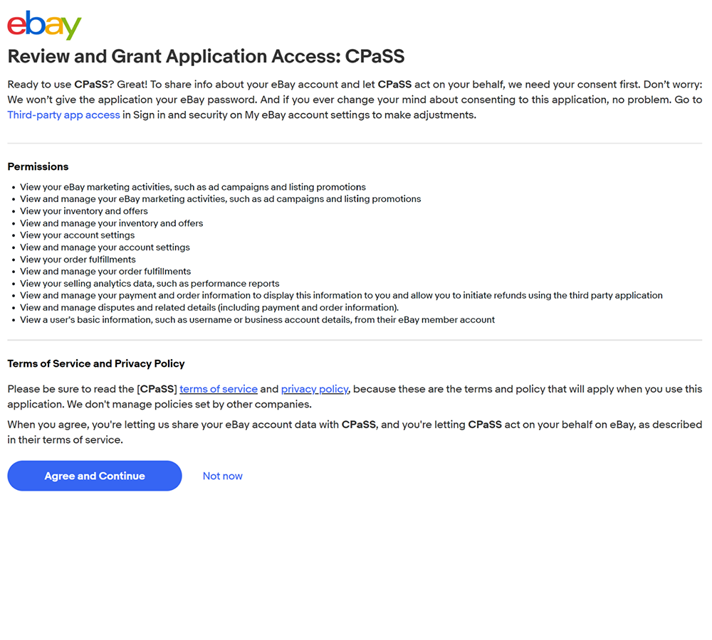 - 利用規約に同意するとCPaSSにeBayアカウントが紐付けらます。