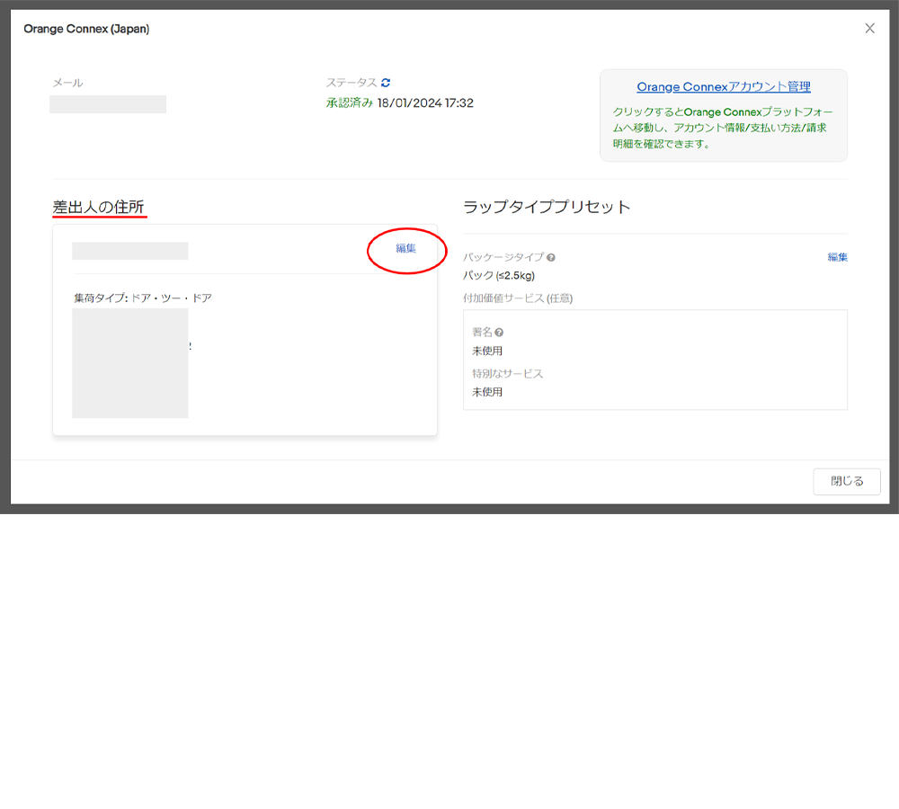 配送サービスの登録に関する質問は、Orange Connex社にお問い合わせください。